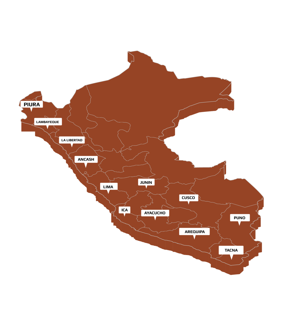 Estamos en mas de 09 departamentos por todo el Perú. Contamos con más de 1 500 colaboradores brindando seguridad a todos nuestros clientes.